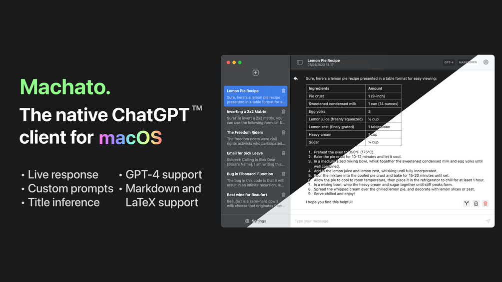 Machato — The native ChatGPT client for macOS